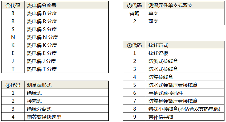 ◆代碼③的“接線方式”是指鎧裝熱電偶冷端接線盒處的接線方式